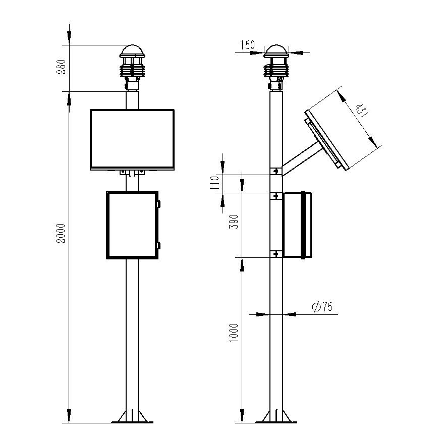 5.兩米碳鋼支架,頂部無需法蘭盤可直接套接傳感器